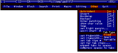| Le Figure seguenti mostrano i menu interni dell'Editor personalizzato Q.EXE; la loro consultazione può tornar utile durante la lettura del manuale QEdit.TXT, già anticipato nella presentazione. |